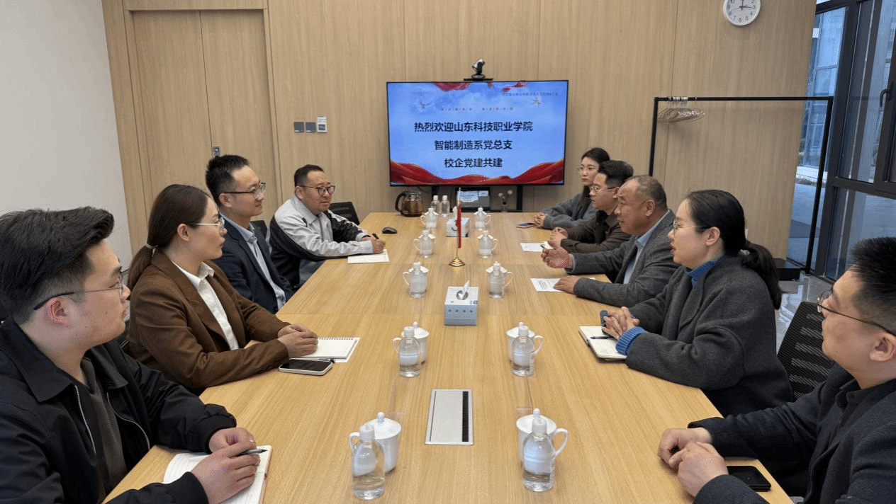 为深入学习贯彻党的二十届四中全会精神,深化“党建链”串联“教育链”“产业链”“人才链”“创新链”融合机制,扎实推进校企党建联建共建工作落地落实,深化实践育人成效,2026年3月27日下午,山东科技职业学院智能制造系党总支书记陈守学一行5人赴歌尔股份有限公司开展交流活动,先后与歌尔股份有限公司人力资源总支部委员会成员围绕校企党建联建共建工作深入研讨,与智能制造系歌尔工匠班学生座谈,为校企协同育人、共育高素质技术技能人才凝聚新力量。